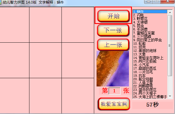 家长还可以修改每副图片的解释文字和解释声音。通过这个软件不仅可以锻炼孩子的观察力,耐性,记忆力,而且还可以看图识字,大概可以学近600个字,而且家长可以修改图片的文字解释,就可以学更多的字。我们也会不断升级,将有更多图片可用,注册用户永久免费升级。最新版还添加了机器朗读功能,并且能给解释文字添加拼音。对于3岁以下的小孩子,还没有能力拼图,可以作为看图识字的软件,在图片上点击,每副图片文字和声音解释就会自动弹出。