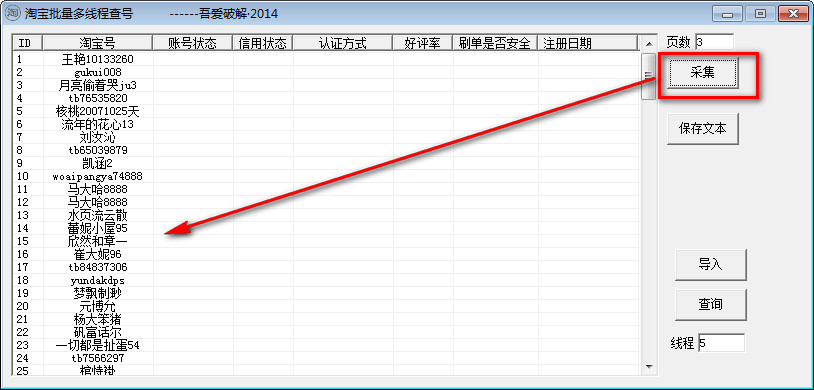 1、点击“采集”,系统自动采集小号