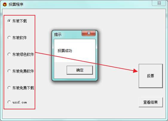 自定义投票选项(网络投票软件)是一款绿色好用的免费网络投票软件。软件功能强大,可以自定义投票选项内容,采用一台电脑运行此程序,投票者依次进行投票,保证每个人投票没有受到其它人影响,最大程度保证投票公平合理性。