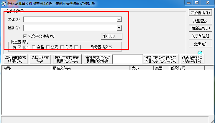 现在关于文件搜索器的软件有很多,那么每种软件都有自己的特点,有一款软件叫做数码龙批量文件搜索器。那么这款软件都有哪些特点呢?《数码龙批量文件搜索器》可以把文件名列表里的文件(用文本文件保存文件名列表)批量搜索出来,然后你可以有选择的将这些搜索结果统一拷贝或者移动到某一指定文件夹里。 接下来,介绍一下。