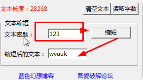 3、在左下角填写密匙(可不填),点击缩短,就可以获得缩短后的文本了