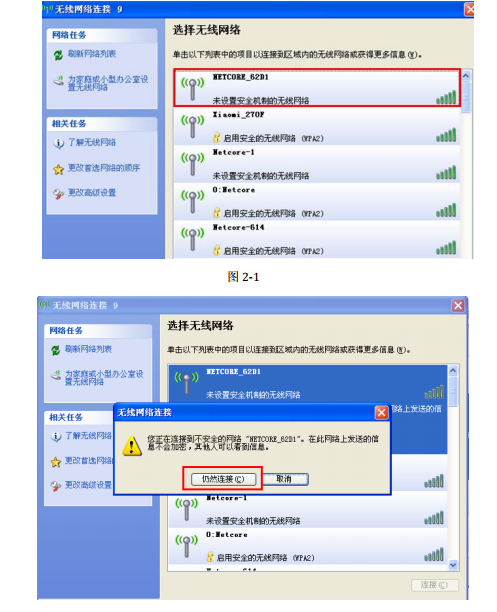 POWER4 默认的 SSID:Netcore_xxxx(xxxx 为路由的无线 MAC 后 4 位数),双击连接,默认的无线没有设置密码。
