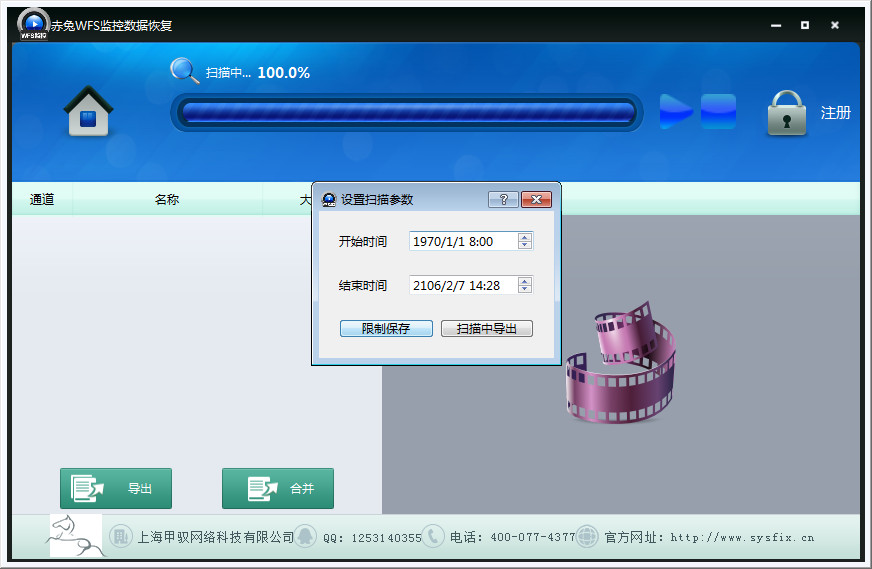 8、支持指定时间段内监控录像扫描,注册版指定时间段内扫描可边扫描边导出