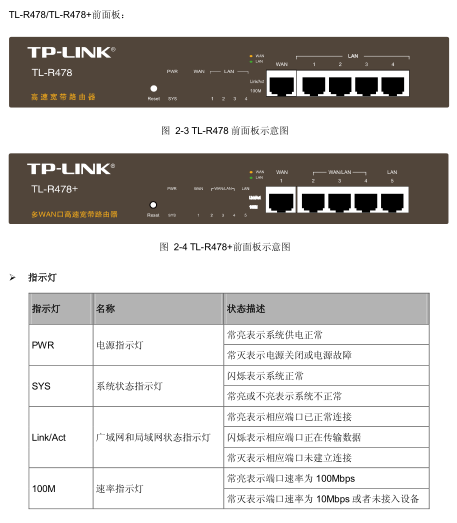 TL-R478G+是一款全千兆多WAN口高速宽带路由器,采用基于MIPS网络专用处理器的高性能硬件平台,网络数据处理能力强大。以下文档是TL-R473 V3,TL-R483 V3,TL-R478 V4,TL-R478+ V5,TL-R4148 V4,TL-R4238 V4,TL-R478G+ V1用户手册,有需要的朋友可立即下载此文档。
