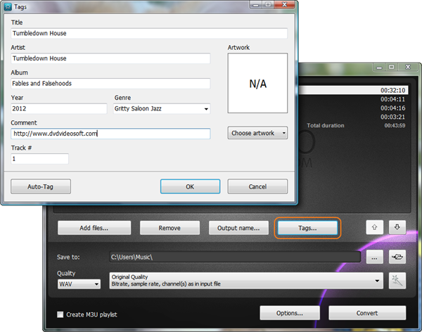 如果你想设置标签,点击标签…… 按钮,设置标题、专辑、艺术家和其他参数。