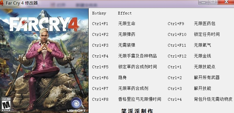 孤岛惊魂4是很多玩家朋友们都很喜欢玩的游戏。那么《孤岛惊魂4》全版本十六项修改器4.0,新增隐身、解开所有武器、背包升级无需动物皮。接下来,小编来给大家介绍一下。