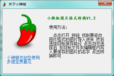 小辣椒图片格式转换提供各种常见格式的图片格式转换,软件十分小巧、快捷,是您平日里处理图片格式的轻便好帮手。