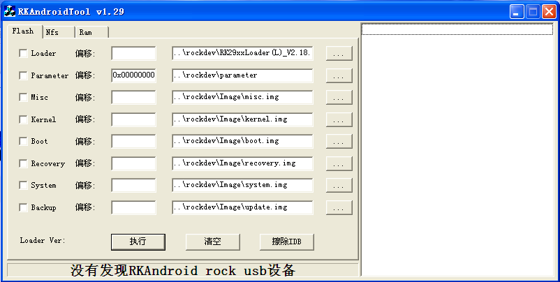 RK29SDK板通过 USB(不是输出信息的USB口)下载固件,你可以将固件烧写到 Flash中;也可以将固件放在 PC Host 上,然后开发板通过 NFS 挂载主机上的根文件系统;甚至可以将固件通过 USB下载到开发板的 SDRAM中直接启动(受 SDRAM容量所限,不能将整个 Android下载到SDRAM中运行)。