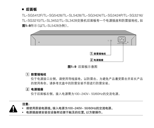 TL-SG5428多机型后面板介绍