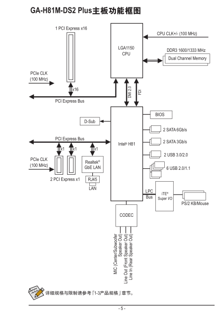 GA-H81M-DS2Plus主板功能框图..............................................................................5
