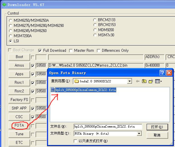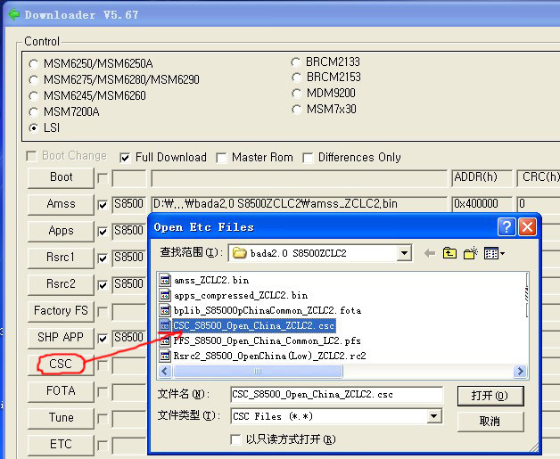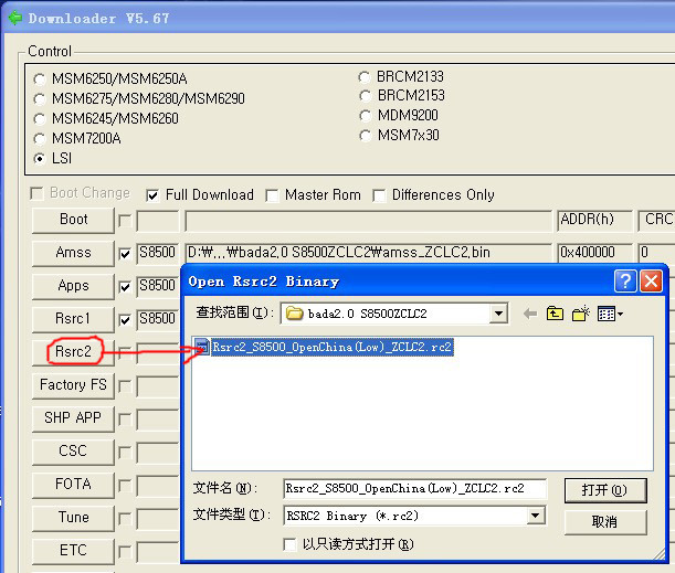 4、再点【Amss】按钮。注意:文件必须是在bada2.0 S8500ZCLC2文件夹内的,注意核对名字