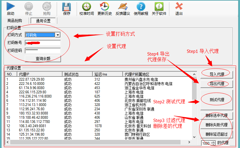 2、通用设置(设置打码、代理)