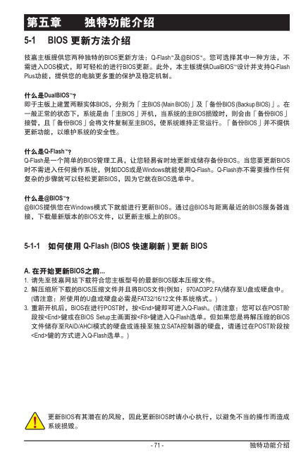 5-1-1如何使用Q-Flash (BIOS 快速刷新)更新BIOS .................................................71