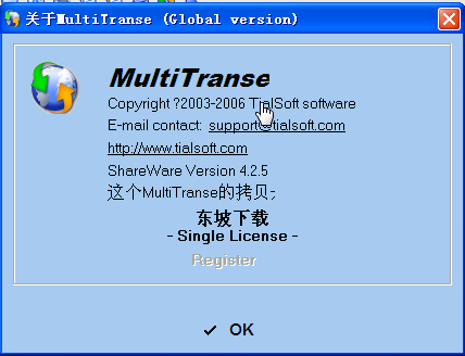 MultiTranse 是利用网上的免费资源,可以对英语, 葡萄牙语,荷兰语,法语,汉语,西班牙语,德语,意大利语,希腊语,俄语,韩国语,日语等语言之间进行翻译的软件。程序可以翻译具体词、词组、句子甚至小文章, 一次只能翻译6000 字符。