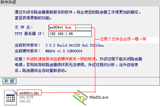 升级方法二:如果您路由器升级界面类似下图(含“TFTP服务器IP”字样),请按以下步骤进行升级:
