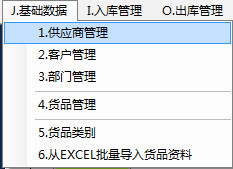 1、基础数据模块 包括功能:供应商管理、客户管理、内部部门管理,货品管理、货品分类、EXCEL批量导入、产品构成表BOM表功能、编码自动生成功能、条码功能