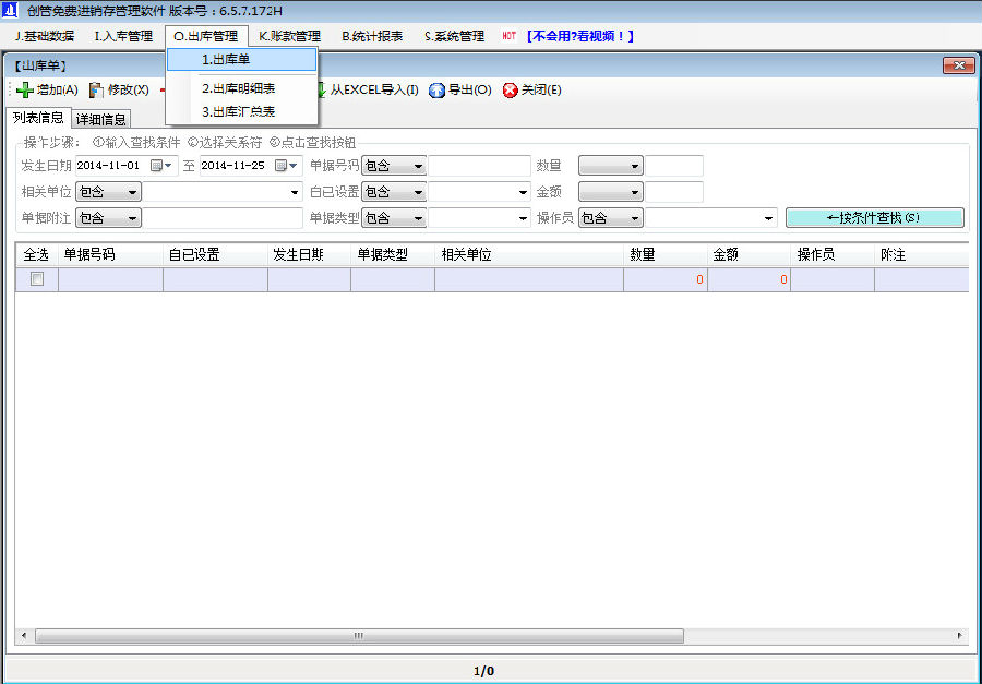 3、出库管理模块 包括功能:出库单、出库明细表、出库汇总表
