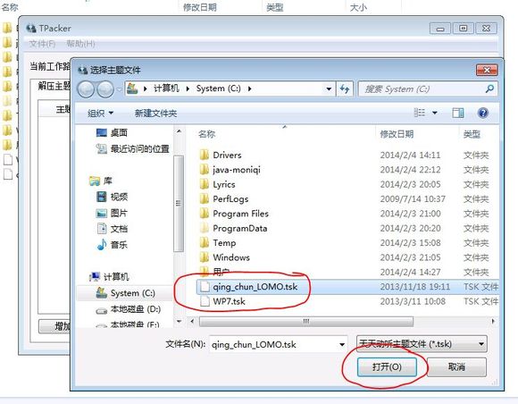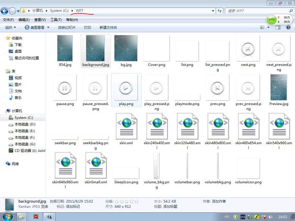 解压“WP7.tsk”皮肤是这样,你可以替换皮肤里面的图片后打包回去