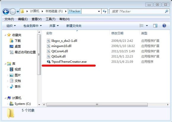 解压“天天动听皮肤解包打包工具.rar”到任意目录下,运行“TtpodThemeCreator.exe”