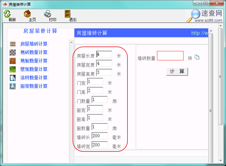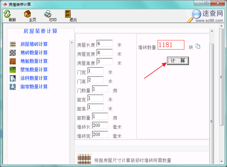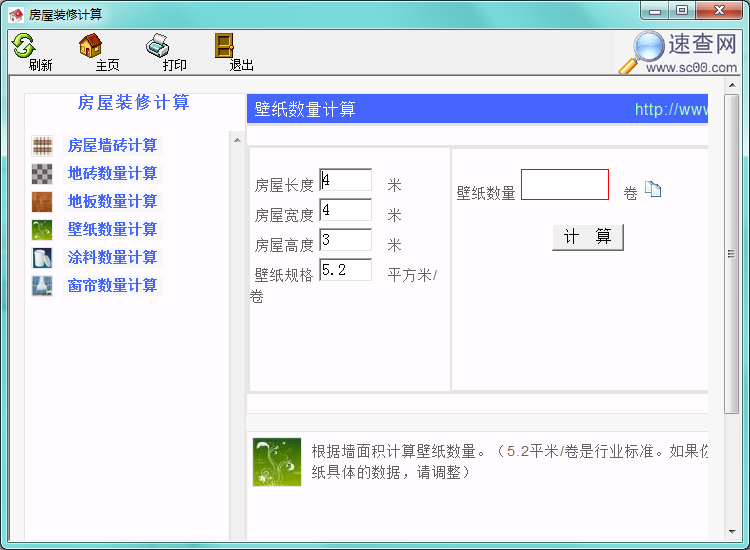 房屋装修计算器,专业对房屋装修中常用的材料数量进行计算,包括墙砖、地砖、地板、壁纸、涂料、窗帘数量计算。根据数量即可得知预算,房屋装修必备哟!
