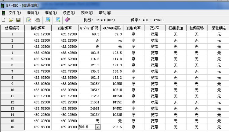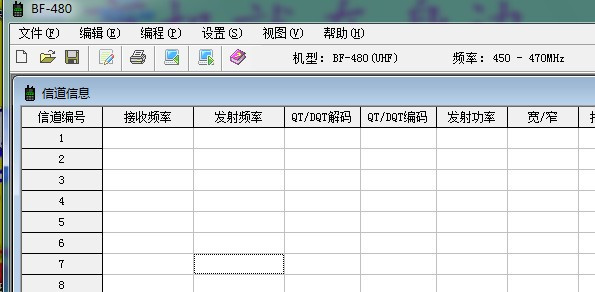 4,将USB写频线连上对讲机并打开对讲机的电源,且要将上述的BF-480软件打开,打开后的效果图如下
