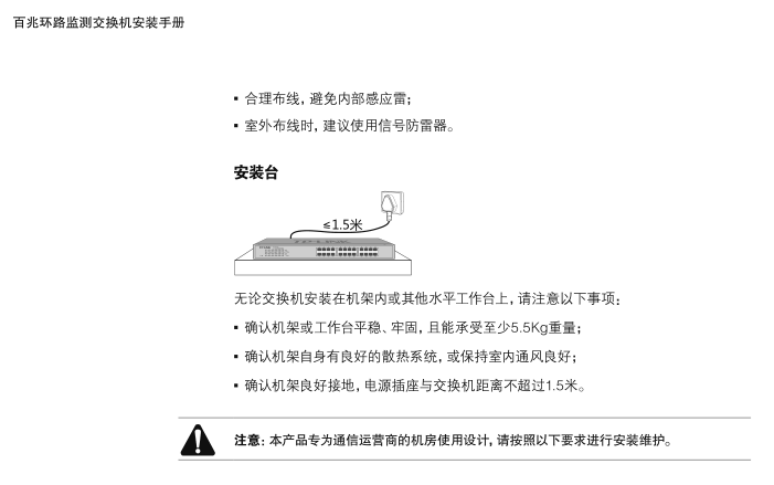 TL-SF1016E是一款16口百兆环路监测交换机,采用高效且免配置的环路监测方法,实时监测网络状况,及时发现、定位并解决网络环路问题。所有端口均支持线速转发和MDI/MDIX自动翻转功能,支持19英寸机架安装。以下文档是TL-SF1016E/TL-SF1024E安装手册,有需要的朋友可立即下载此文档。