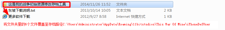 2.将文件夹里的6个文件覆盖至存档路径C:\Users\Administrator\AppData\Roaming\11bitstudios\This War Of Mine\iPhoneDefUser