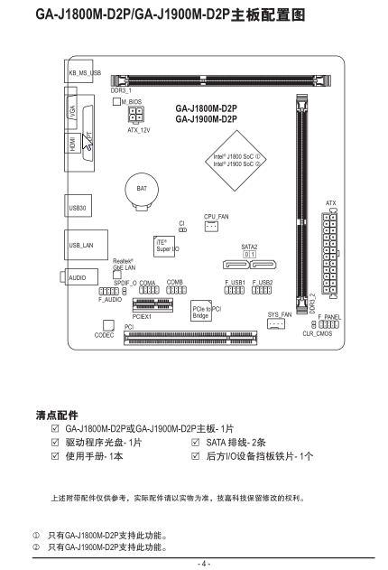 GA-J1800M-D2P/GA-J1900M-D2P主板配置图 ...........................................................4