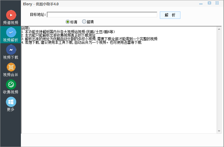 2、优酷、土豆、酷6视频解析:输入地址,点击【解析】即可