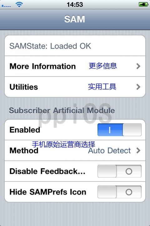 16、iTunes 激活成功(没有报错)后,在 SAM 主界面 【Subscriber Artificial Module】栏中 Enabled 开关关闭