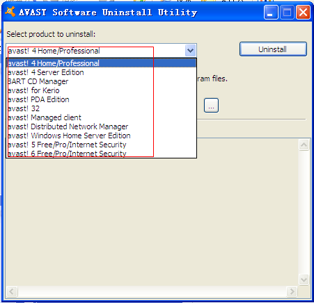 2. 在安全模式下运行卸载工具,选择您已安装avast杀软名称以及选定avast的安装目录