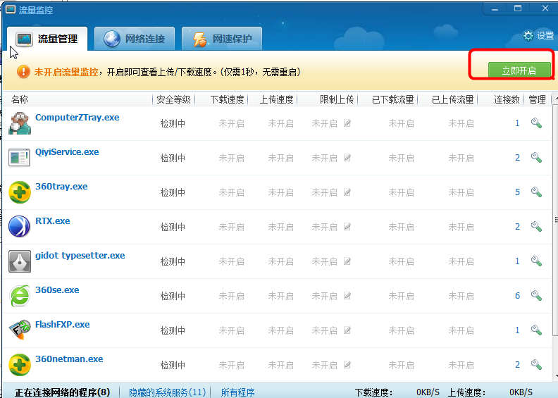 有了这个360网络流量监控以及网络连接查看器两个功能后,基本上就能将那些偷偷联网的程序以及那些恶意、可疑的软件全部给揪出来了。
