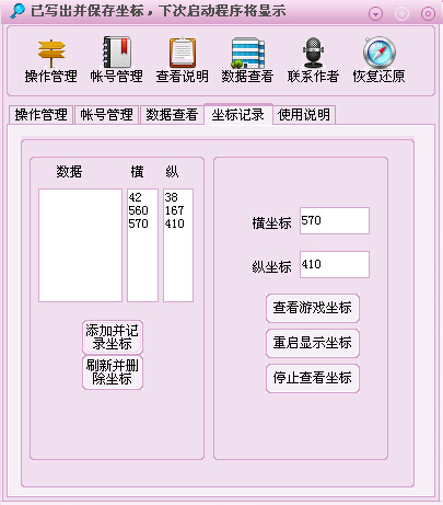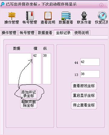 第三步:鼠标不动,将横坐标和纵坐标手动输入到编辑框中,然后按下添加并记录坐标按钮
