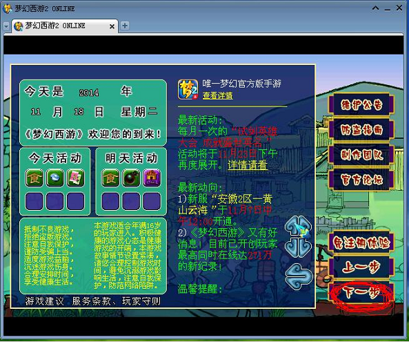 第二步:将鼠标移动到梦幻西游客户端的登陆按钮的2个字上