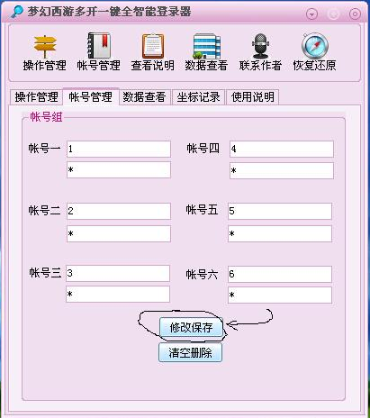 梦幻西游2多开器支持一键自动登陆6个账号,让你解除每日玩梦幻西游手动输入帐号登录的烦恼。
