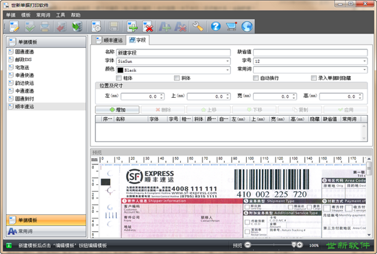 世新单据打印软件是一个免费的通用票据单据打印软件,适合打印快递单、信封、支票等各种单据。软件内置了几种常用单据模板,用户可以方便地创建单据模板,根据需要设置录入字段。世新单据打印软件使用所见即所得的设计方式,用户可以方便地看到单据录数据后的实际效果。