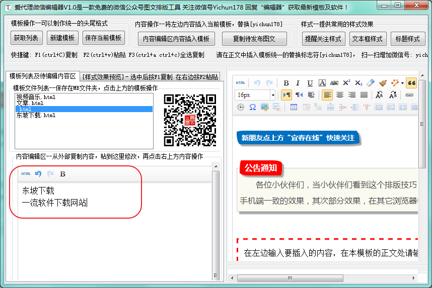 爱代理微信编辑器是一款免费的微信公众号图文排版工具。爱代理微信编辑器为微信在线编辑器改编而来,可以制作模板保存在本地,方便多图文编辑,能统一格式。
