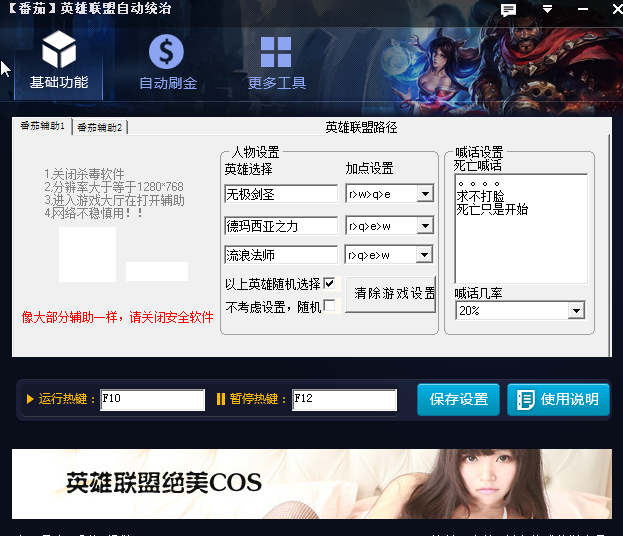 英雄联盟自动统治助手其实就是现在腾讯最火的同名游戏辅助工具,他最大特点就是支持统治战场人机,在每局结束后会显示金币和等级,并自动匹配下一局面。因为简单百宝箱专门为英雄联盟制作的一款刷金币助手,所有大家要注意是只能在统治战场使用!