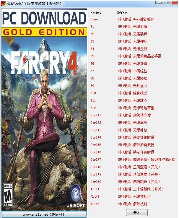 孤岛惊魂4全版本二十四项修改器是最新单机游戏《孤岛惊魂4》的强大修改工具,通过它就可进行无限血值、无限弹药、无限金钱等24项操作设置辅助,以此在在降低游戏的难度的同时,还能增加自己的在游戏
