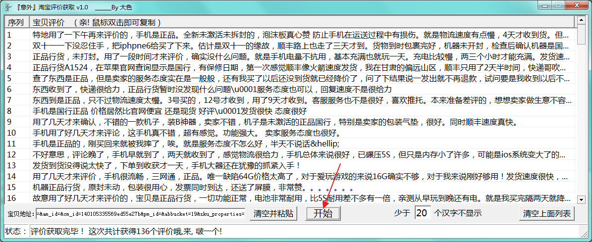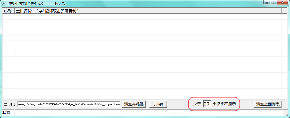 淘宝评价获取是一款淘宝评论获取工具,工具为绿色版本,无需安装即可使用,主要功能为可帮助用户采集淘宝店铺的所有评价信息,适用于淘宝卖家对竞争对手的店铺进行分析,欢迎需要的朋友下载使用。