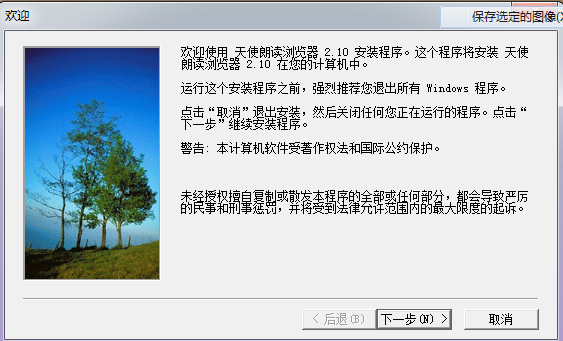 浏览器安装欢迎向导界面,同意用户协议,点击下一步继续安装。