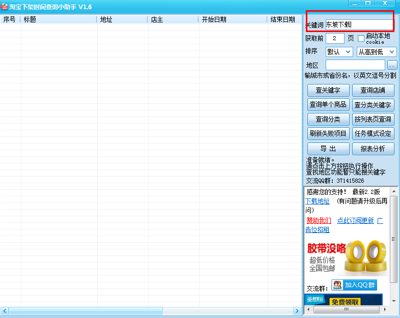 只要你在软件内设置你想要查询的内容,就能批量获取到与关键词相关的宝贝,以及宝贝的详细信息。这款淘宝上下架查询软件使用完全没有安全风险,无需输入帐号密码登录,无需付费,你可以通过关键词搜索宝贝,也可以通过高级搜索,进一步缩小范围,还能在分类下搜索,或者查找店铺。