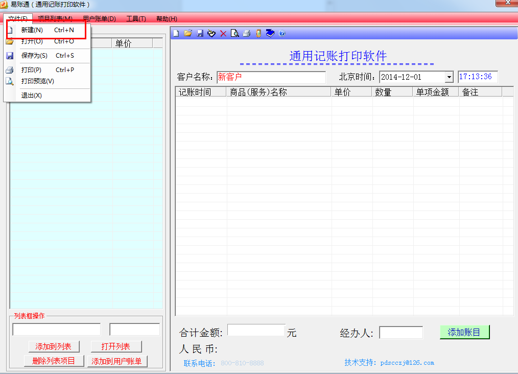 易账通(通用记账打印软件)使用方法