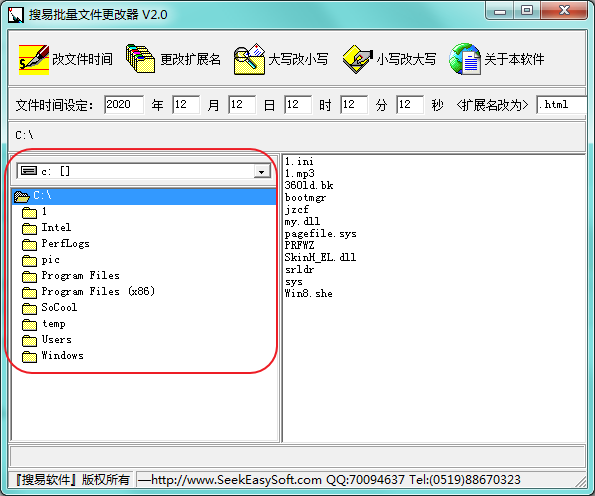 搜易批量文件更改器是一款非常实用的文件名批量修改工具。工具为绿色版,简单易用,可帮助您来对文件名进行批量修改,同时可定义文件的修改创建时间、修改时间等信息进行修改,支持单个文件夹或多个文件的修改。欢迎下载使用。
