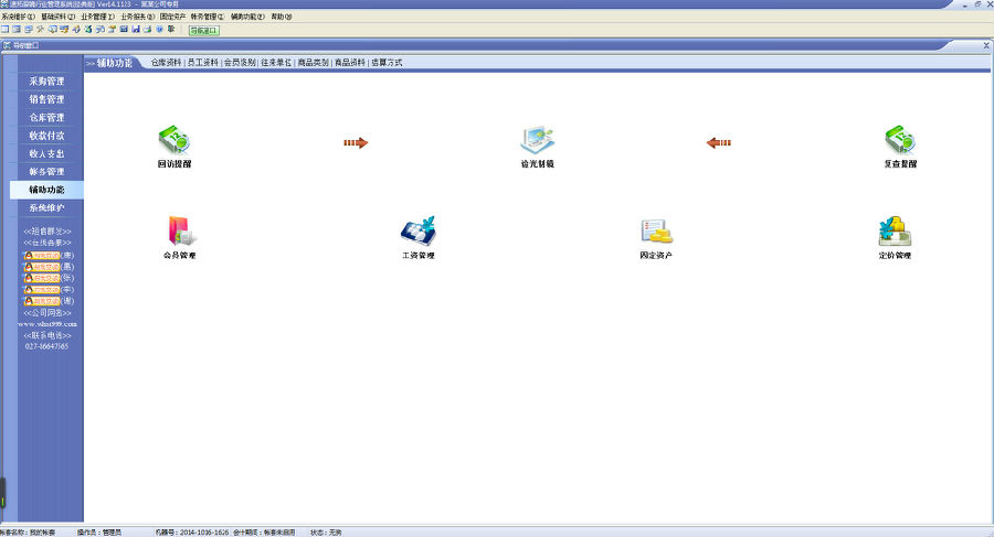 增强功能:售后服务、捆绑销售、赠品管理、促销管理、定价管理、会员管理、固定资产管理、工资管理、短信群发及员工提成等