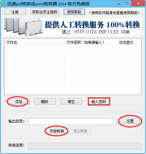 3.如文件有密码,把文档添加到软件后,选中文档,点击本软件上面的“输入密码”功能,把密码输入进去再进行转换.