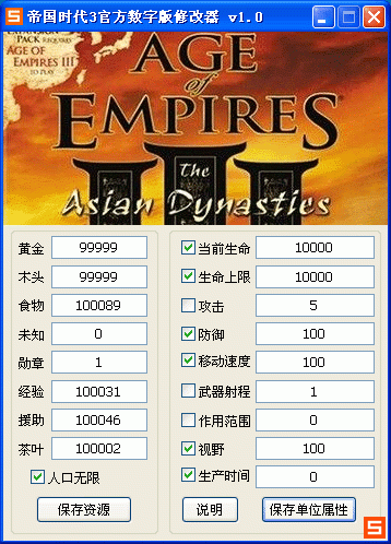 帝国时代3官方数字版修改器是一款专门用于《帝国时代3》的相关数值修改的修改器。修改器操作简单,一键修改,支持保存当前单位属性。支持金钱、经验、勋章、生命、攻击等18项属性的修改,有需要的玩家赶紧来下载吧!