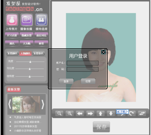 第七步:如果以上都做好了,就可以保存了,如果您没有帐号你可以点击注册一个帐号,如果您有发型屋帐号直接登录,登录成功以后,您可以选择保存在您的发型屋个人空间,或保存在电脑里