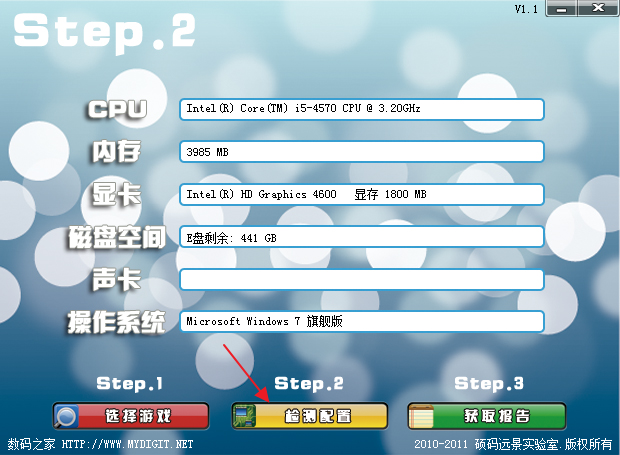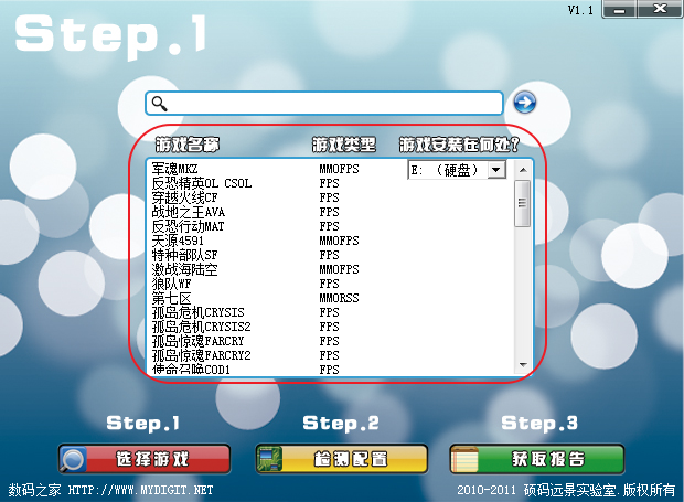 你有没有这样的经历?花费两天两夜下载了十几个g的游戏,完成后无法运行…或者很卡,基本不能玩!电费心血全白费! 把问题交给硕码远景游戏硬件配置检测器吧!导航式操作,一键全搞定!内置智能算法,全自动判断您的配置是否能运行或流畅运行某款游戏~外接数据库模式,可随时更新!