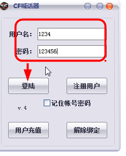 2、随便输入一个帐号密码,比如帐号:1234 密码:123456,点击【登录】
